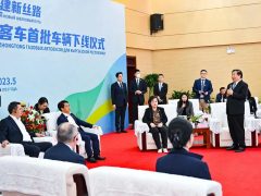 吉尔吉斯斯坦总统扎帕罗夫出席1000台中通客车首批车辆下线仪式