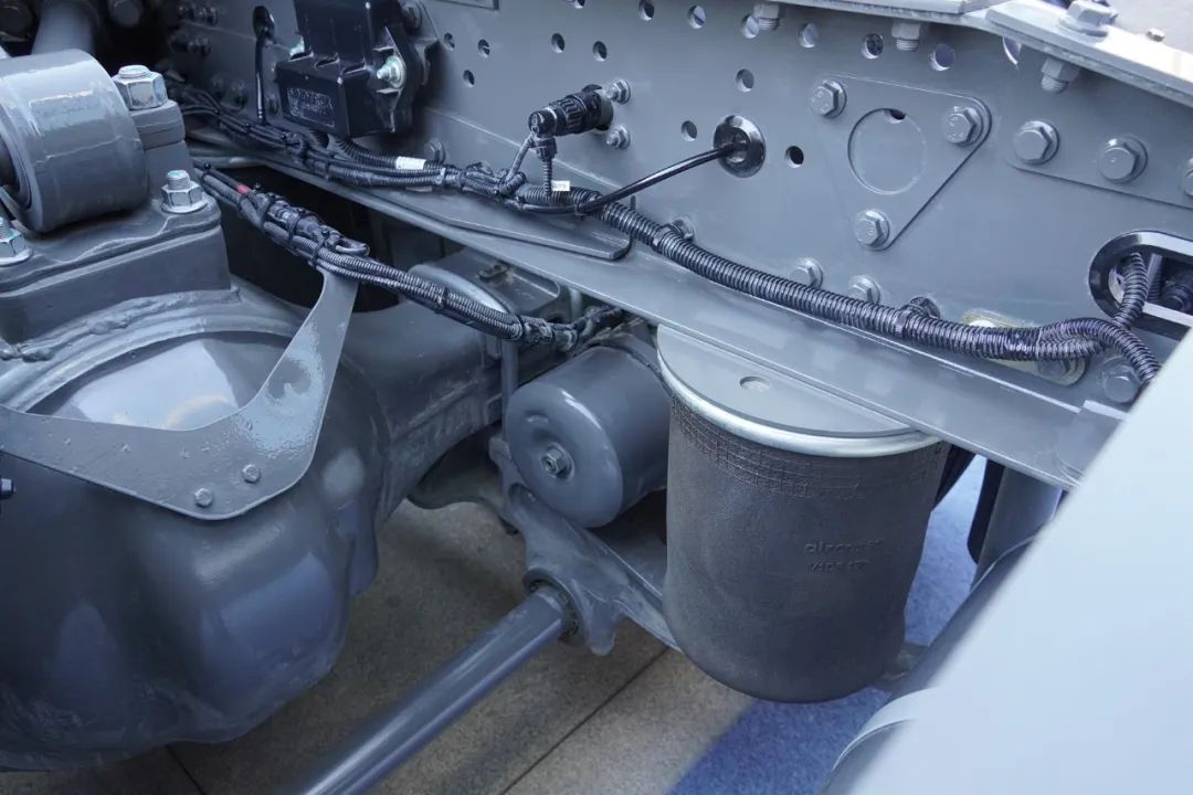 后桥采用的是MCY12BES后桥,速比2.71 ,直接挡小速比又快又省,再加上8气囊空气悬架,用这个车跑甩挂再合适不过了。