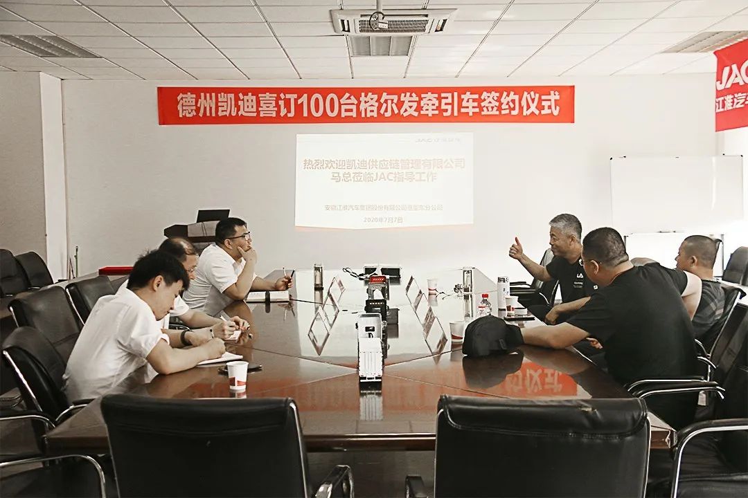 七月热情不减,江淮格尔发牵引车再获大单!2020年7月7日正是受疫情影响后的全国高考的首日,山东德州,格尔发也交出了一份满意的市场答卷,格尔发与德州凯迪供应链管理有限公司就100台格尔发经典版牵引车大单进行正式签约。