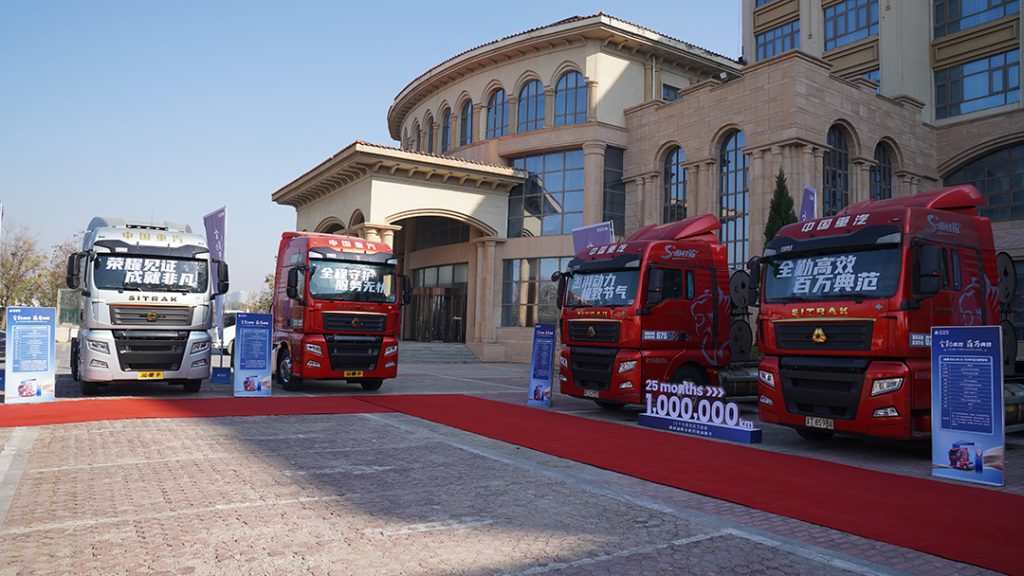 两台重汽汕德卡G7S天然气牵引车25个月完成100万公里
