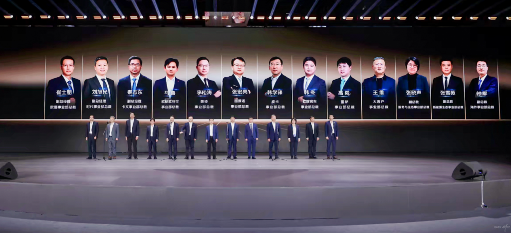 2026年目标的达成,离不开业务端与区域端的协同攻坚。大会伊始,13位事业部总裁与13位区域营销中心负责人(含12位中心总经理及分管领导)集体亮相,展现了福田“主力作战部队+战区支援中心”的矩阵式作战体系。作为福田与合作伙伴结成的“发展与利益共同体”,这支核心团队既是战略落地的关键抓手,也是赋能渠道、联接伙伴的坚实桥梁,他们将带领团队践行 “敢于竞争、敢于胜利” 的宣言,推动营销变革、渠道优化、政策落地等举措直达终端,为全年销量增长与高质量发展提供坚实保障。