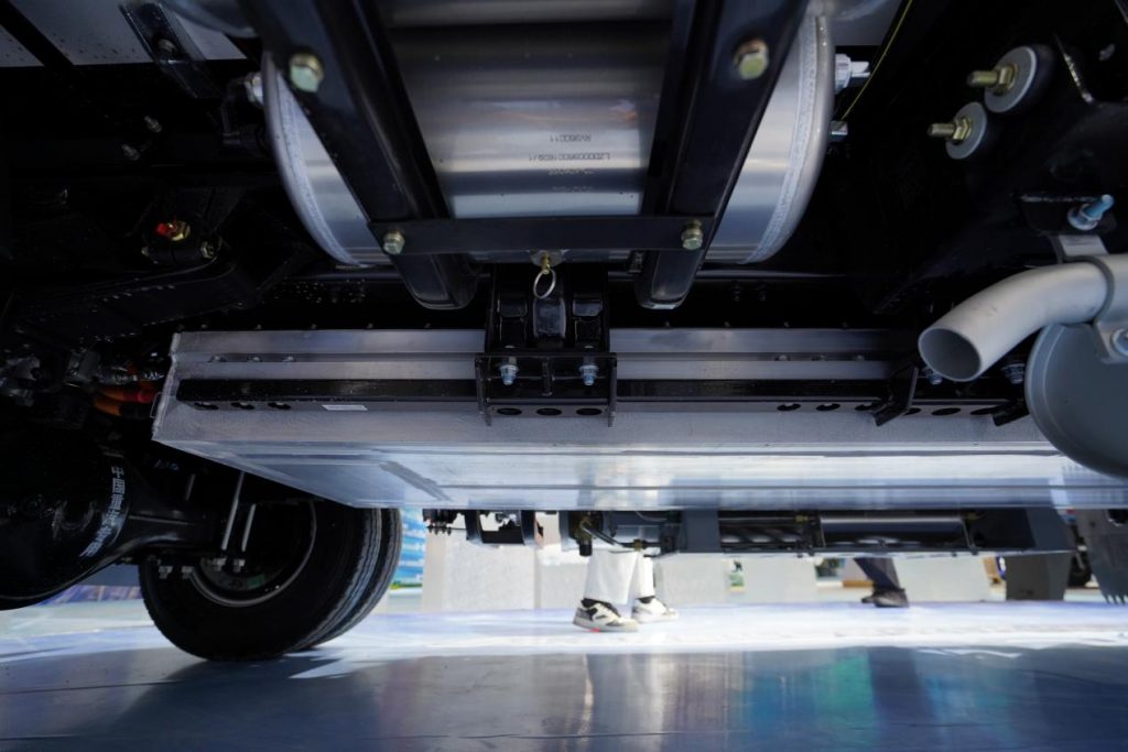 当运输需求延伸至300公里外的中长途干线,统帅T400的175升LNG储罐便展现出强大优势,可提供600公里增程续航,满电满气状态下综合续航直达900公里,大幅减少中途补能次数,提升运输时效。其搭载的G20燃气专用增程器,额定功率达103千瓦,更实现4.6千瓦/公斤的高气电转化率,让每一份燃气都能高效转化为驱动动力。相较于传统燃油轻卡,LNG燃料本身具备成本优势,再配合增程器的高效运作,长途运营的燃料成本进一步降低,真正做到“跑得多,省得多”。