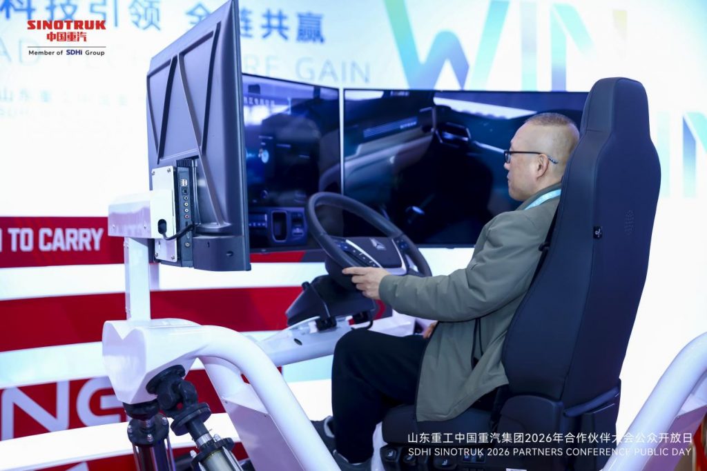 在“超级卡车”展区,一辆辆凝聚匠心与科技的整车成为最具人气的打卡点。现场公众不仅可近距离感受车辆设计的磅礴气势,更是通过模拟驾驶体验真实驾控,在虚拟道路上领略中国重汽产品的卓越性能。