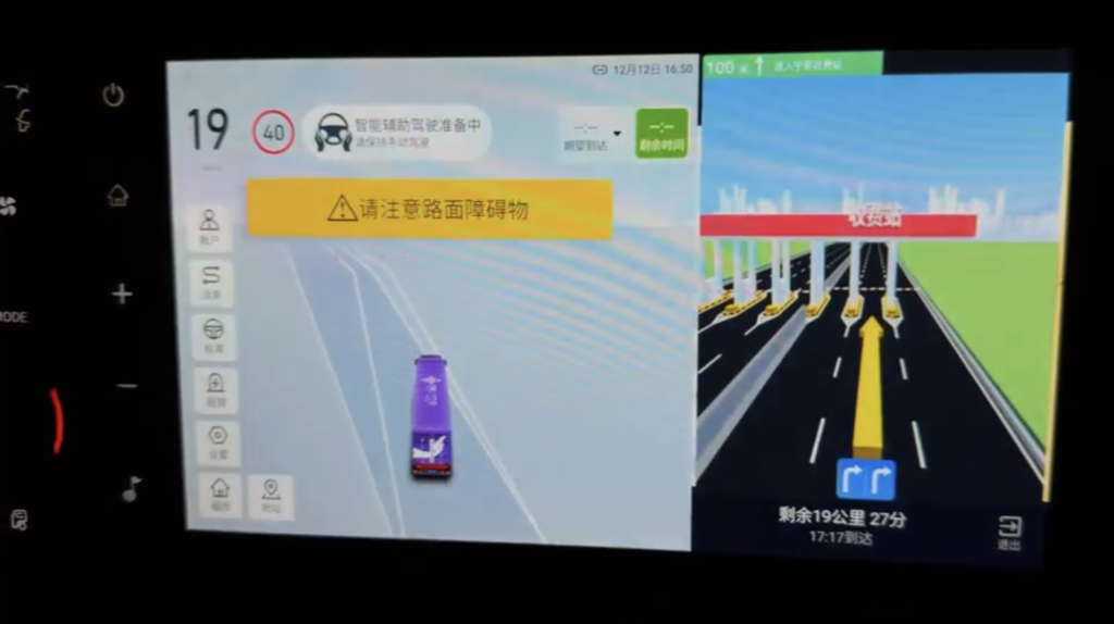 在运输效率方面,欧曼星辉智能辅助驾驶牵引车的高速变道功能,由系统判断符合变道超车条件,可安全触发自动变道超车,整体过程平顺且无违规行为,从而有效减少能耗和行驶时间。遇到合流口路段,车辆的自动上下匝道功能可准确识别和预判,并可从匝道平顺并入/驶出主路,同时根据弯道曲率合理调整匝道行驶速度,进而避免人工操作的滞后和误差。