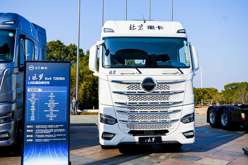 目前,北京重卡i追梦车型包括6×4 720马力LNG混动牵引车与6×4 710马力燃油混动牵引车,精准聚焦长途干线运输场景,持续夯实长途干线第一重卡。