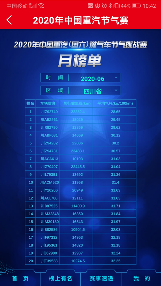 今年6月份打响的2020年中国重汽(国六)燃气车节气挑战赛,就是中国重汽从实际运营的角度,将全国各地的中国重汽燃气车司机集结一块,采用“实车、实货、实际路况、实际运营”原则,“零成本、零门槛”参与比赛,比赛成绩由中国重汽智能通大数据采集发布,用户在实际运营中就可以完成比赛,每辆车跑出的是实际运营气耗。