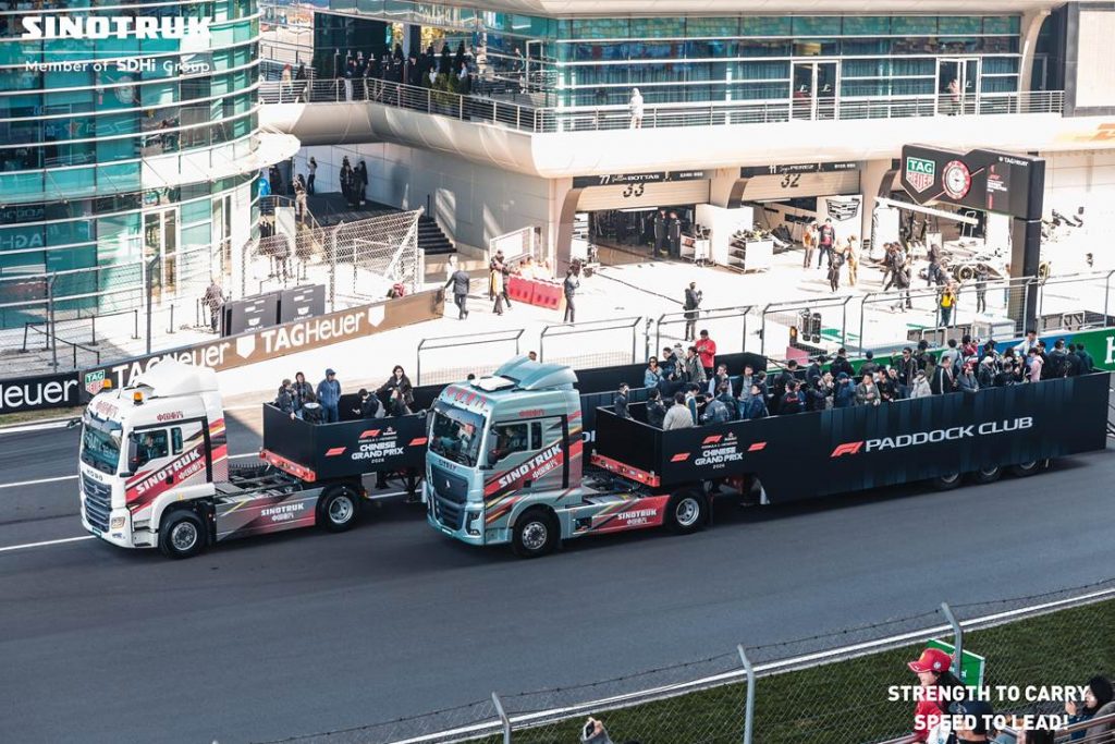 在备受瞩目的车手巡游环节,四辆身披赛道专属涂装的中国重汽重卡与国际最顶级的F1车手同框亮相,当巡游车队驶过赛道,镜头追逐、闪光灯交织,这一“力量与速度”同框的震撼画面,迅速定格为全球焦点。